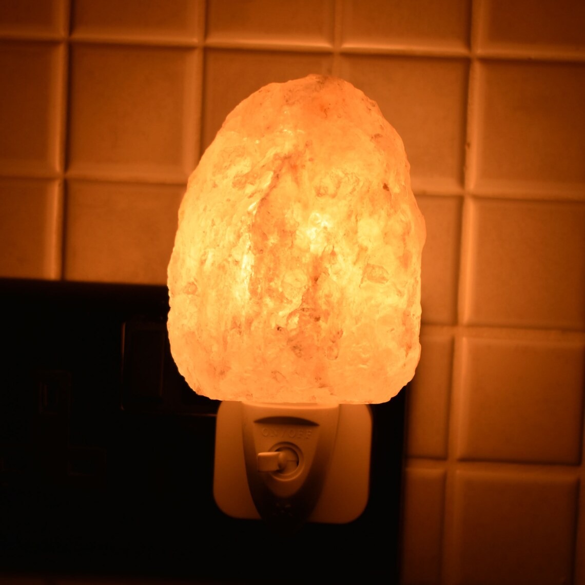 Hand-Carved Natural Pink Himalayan Salt Plug Lamp.