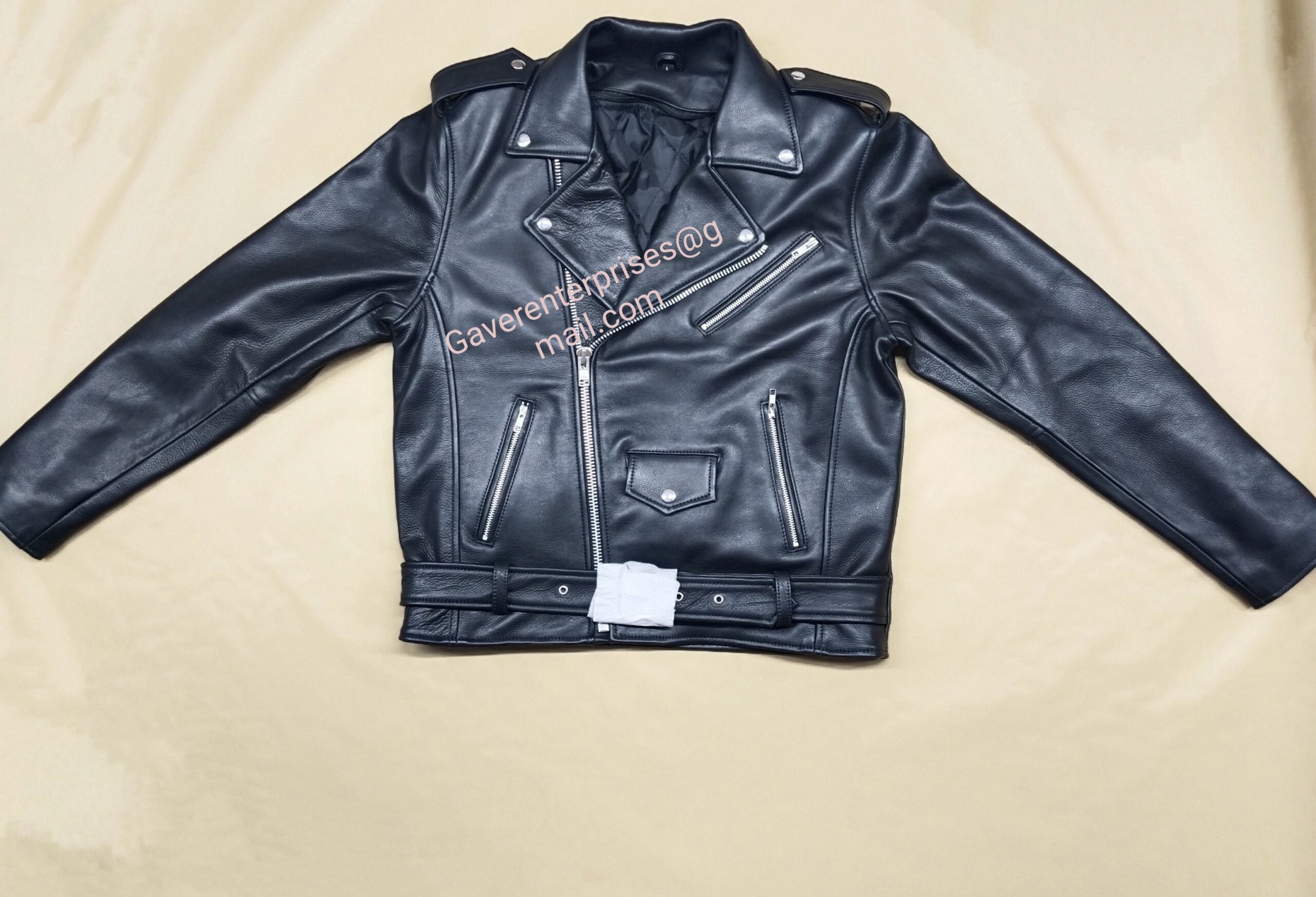 We are manufacturer or Leather products you can try us with sample as well .. our workmen ship 100% quality image attached our another jacket sample lots of articles we have mostly we do the customise. We assure you which leather we use day 1st you can avail us anytime same leather quality.. ( we never use lower quality stuff) zipper use YKK real ( not copy) snaps use real swallow. Leather thickness also customise option.
